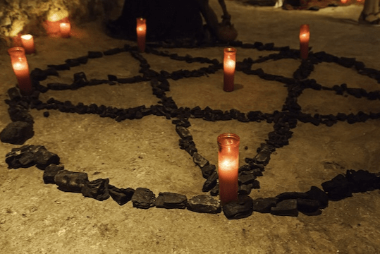 髪の毛をろうそくの火にくべる順番は、五芒星の周囲のろうそくから順に火にくべていき、五芒星の中心に立てたろうそくの火にくべるのは最後にしましょう。